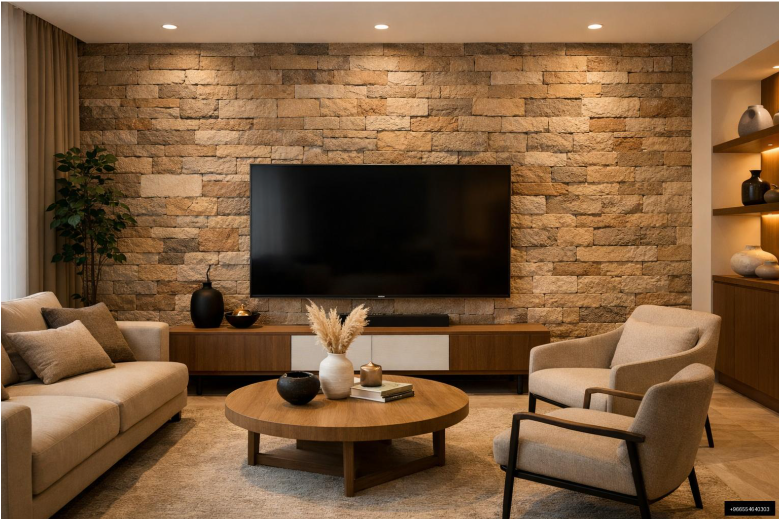 جدران التلفزيون (Feature Walls): يُستخدم لإنشاء جدار مميز خلف التلفزيون في غرف المعيشة، مما يجعله نقطة محورية في الغرفة.